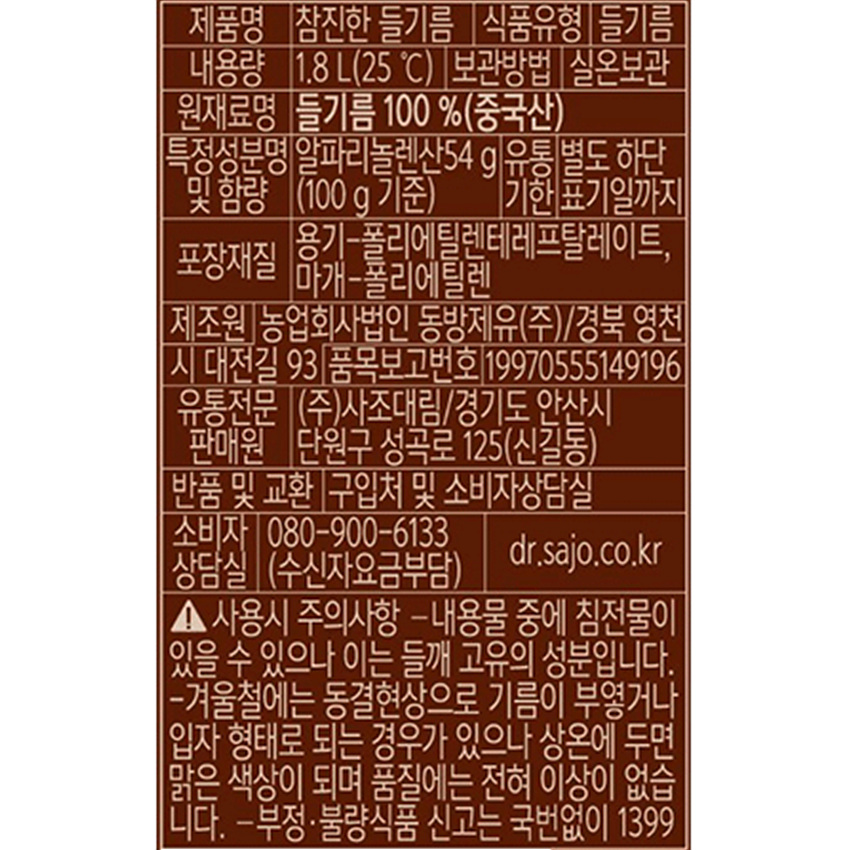 해표 참진한들기름(NEW_1.8L 1.8Kg/EA) 이미지