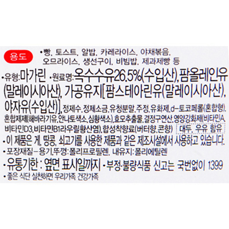 오뚜기 옥수수마가린(200g/EA) 이미지