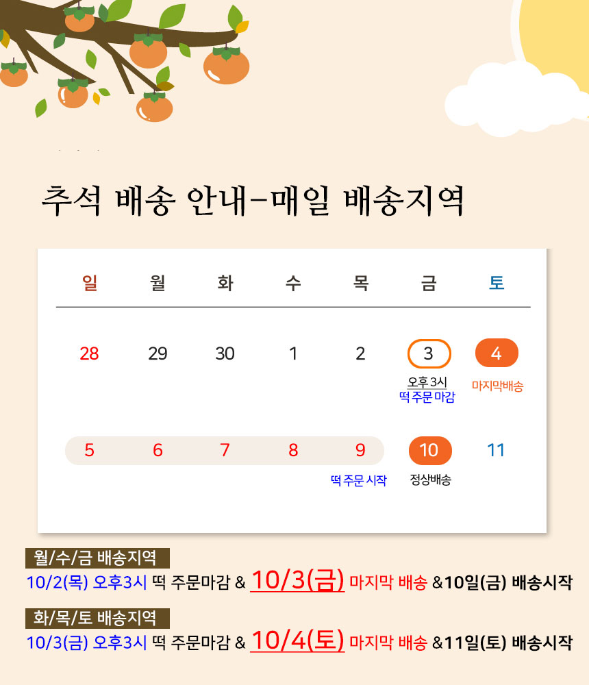 (묶음배송에 떡이 포함된 경우 떡 배송일 기준으로 배송됩니다)