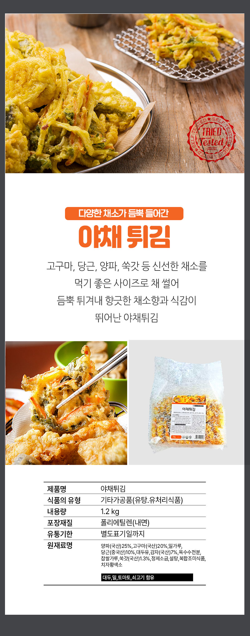 간단설명 : 직접 만들어 튀긴듯한 맛과 튀김모양이 좋습니다.