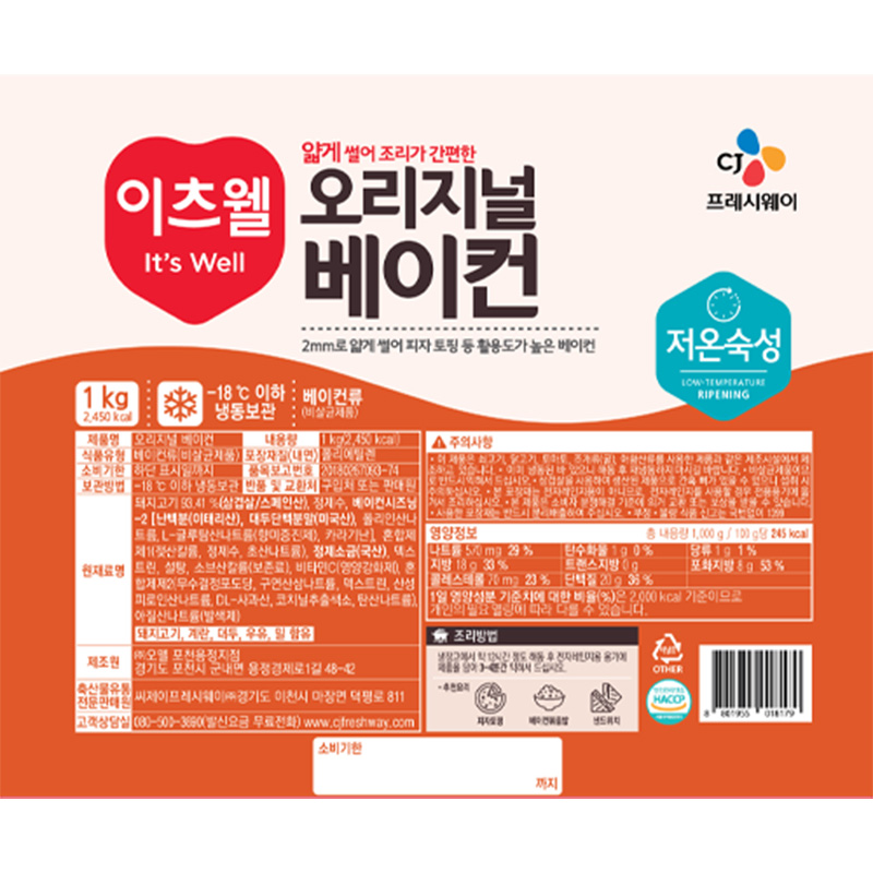 이츠웰 오리지널베이컨(2mm 1Kg/EA)
