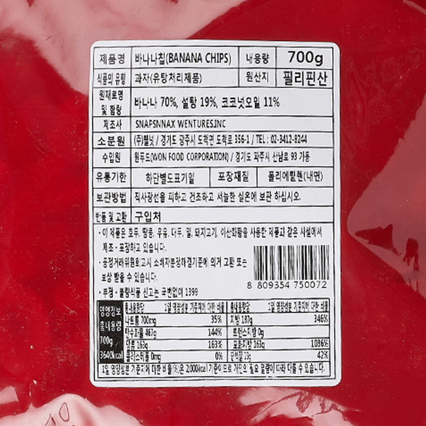웰넛 바나나칩(700g/EA)/필리핀산