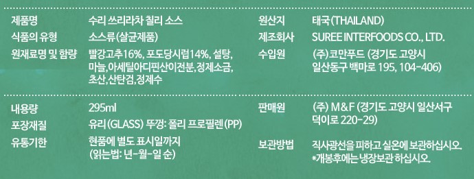 수리 스리라차칠리소스(295ml 295g/EA)