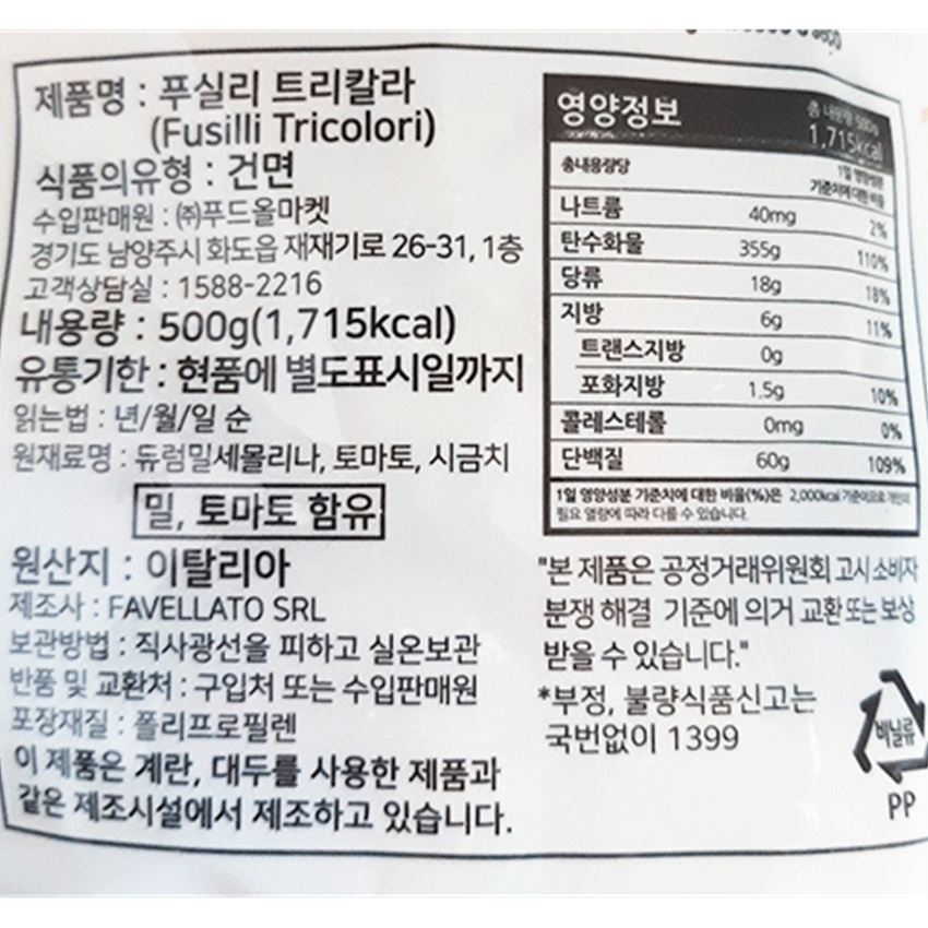 판타넬라 푸실리(삼색 500g/EA)