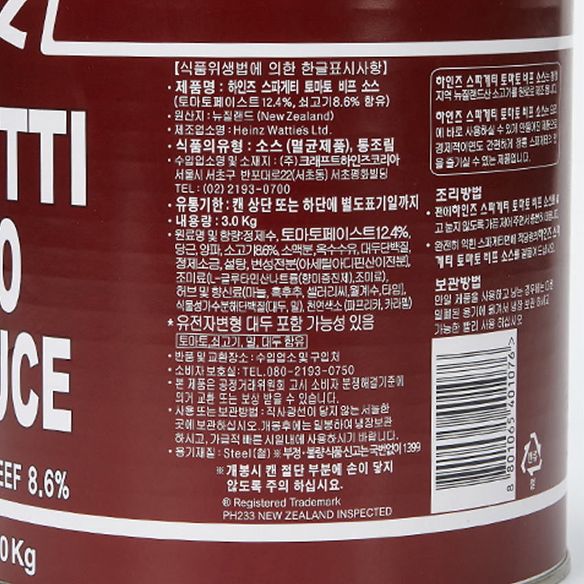 하인즈 토마토비프스파게티소스(3Kg/EA) 이미지