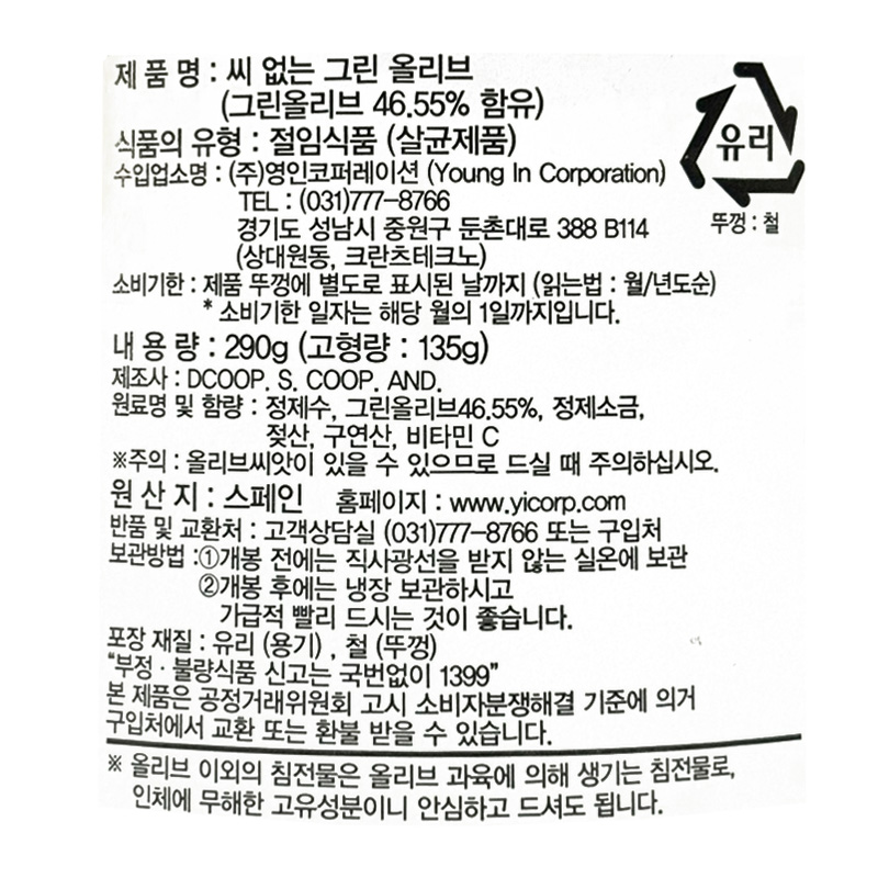폴리 그린올리브(피티드 300g/EA) 이미지