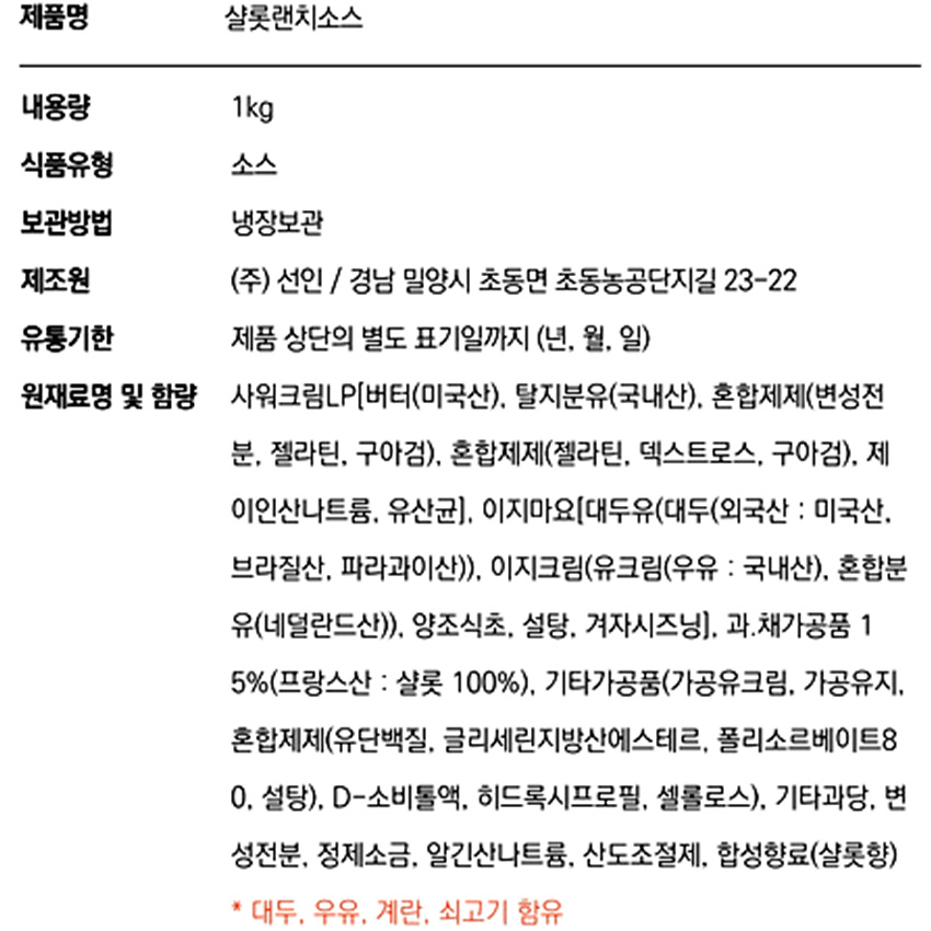 선인 샬롯렌치소스(1Kg/EA) 이미지