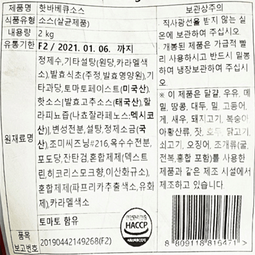 삼조쎌텍 핫바베큐소스(2Kg/EA)