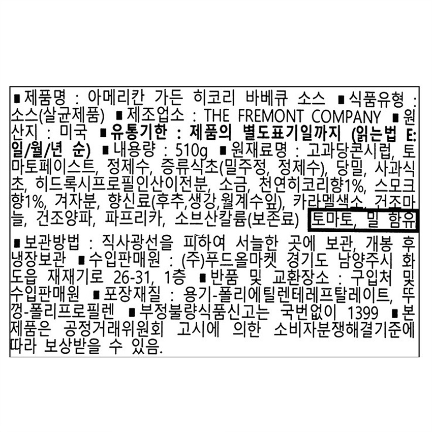 아메리칸가든 바베큐소스(히코리 510g/EA)