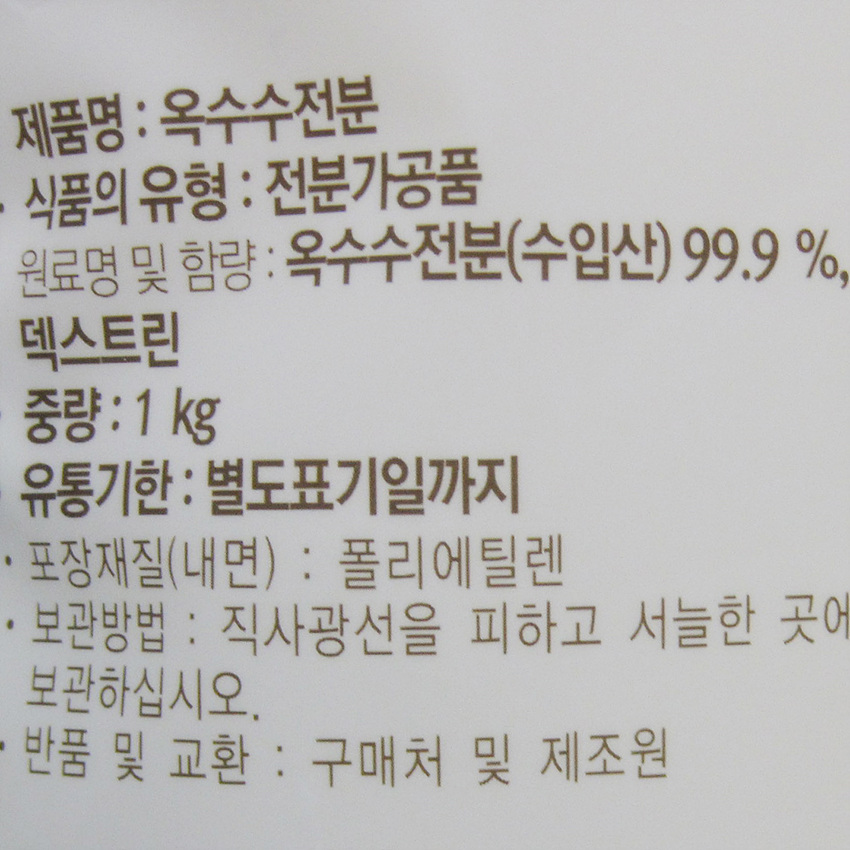 농부의뜰 옥수수 전분(100% 1Kg/EA)