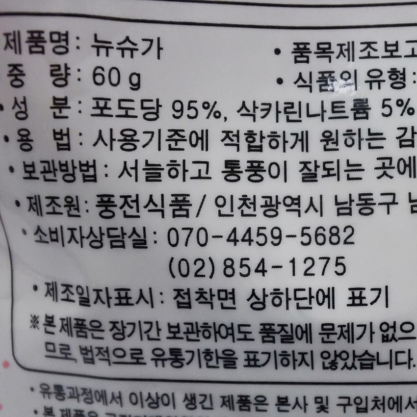 풍전식품 뉴슈가(60g/EA) 이미지
