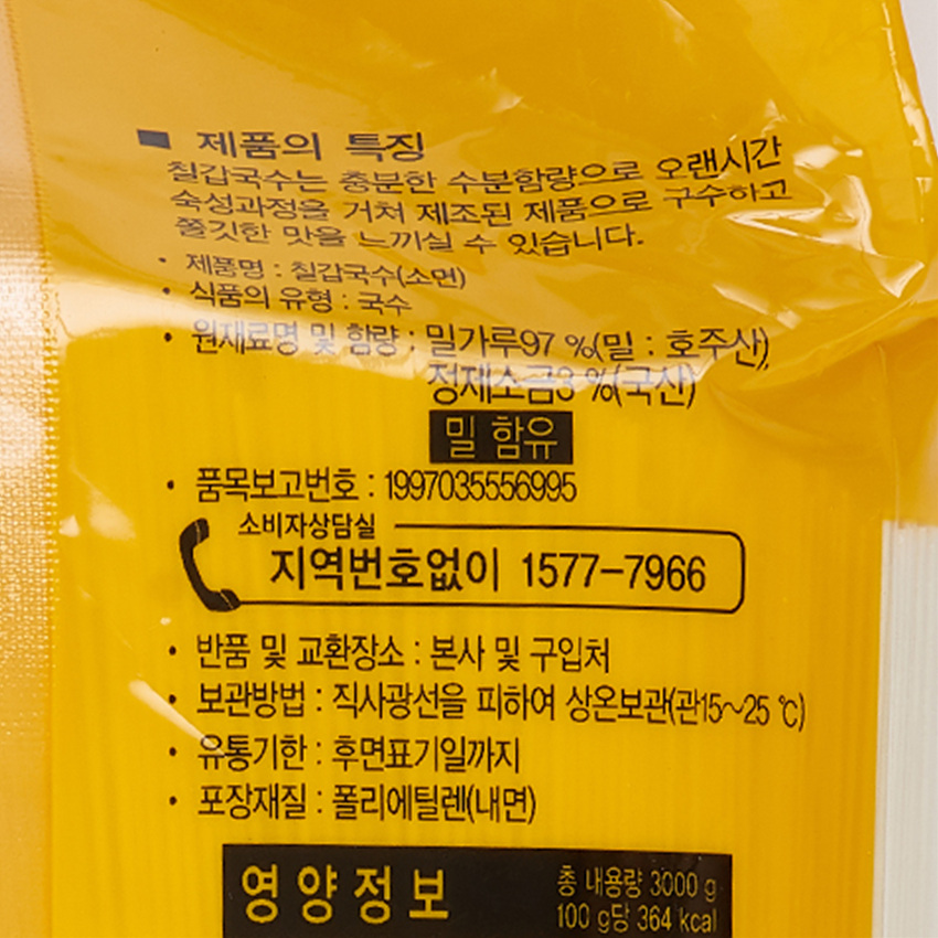 칠갑농산 소면국수(CJ프레시웨이전용 3Kg/EA) 이미지