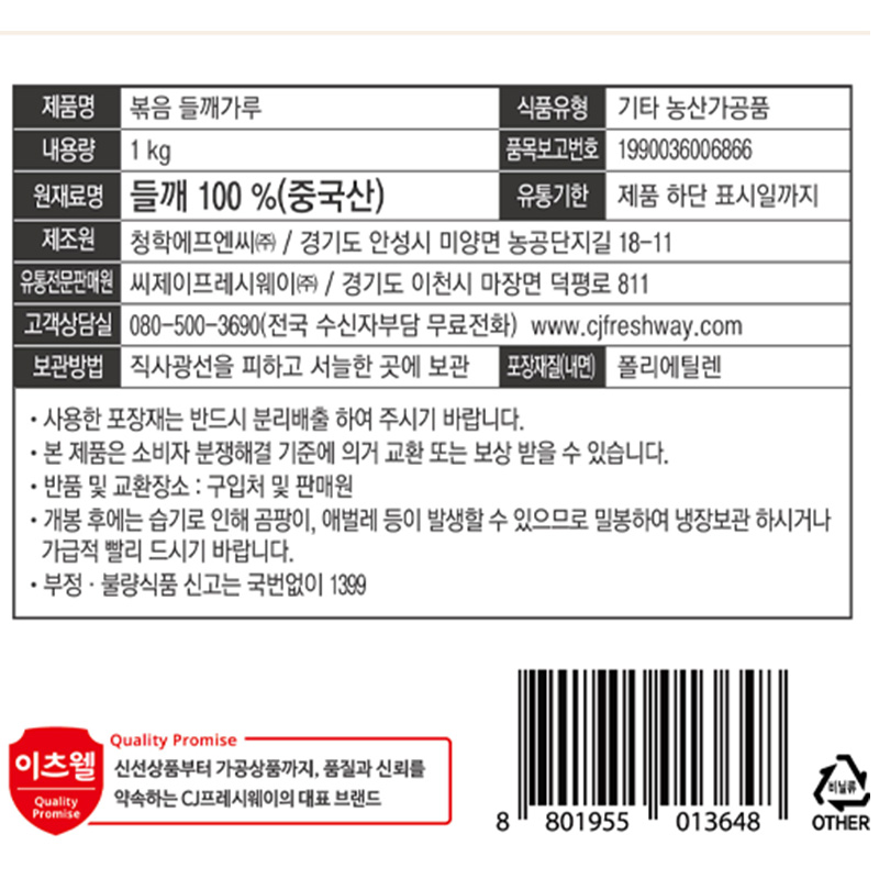 이츠웰 볶음들깨가루(거친것 1Kg/EA)