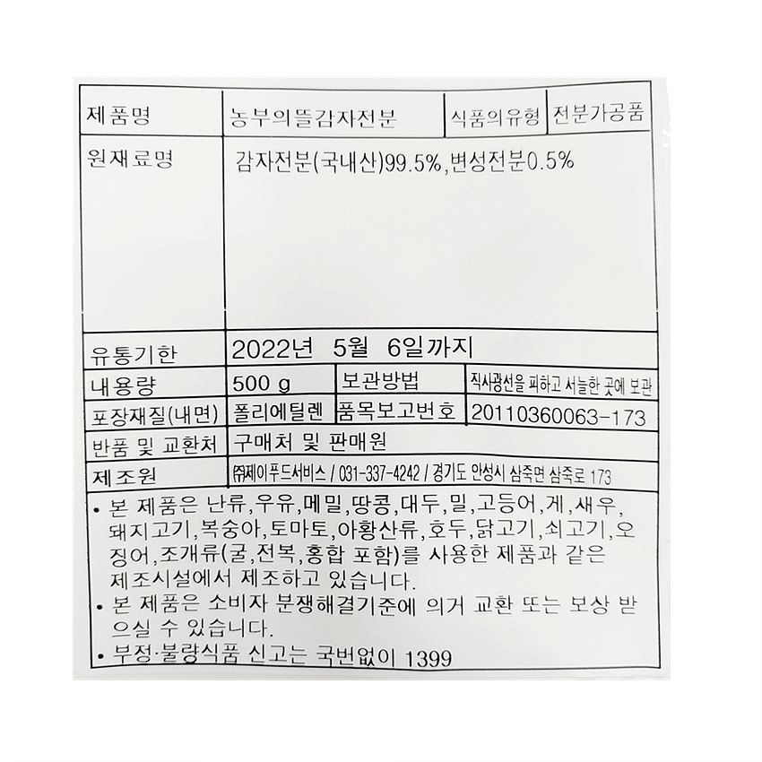 농부의뜰 감자 전분(99.5% 500g/EA)