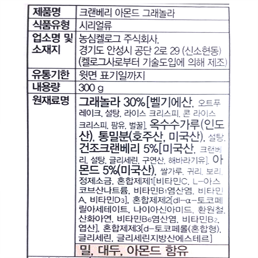 켈로그 그래놀라(크랜베리아몬드 300g/EA) 이미지