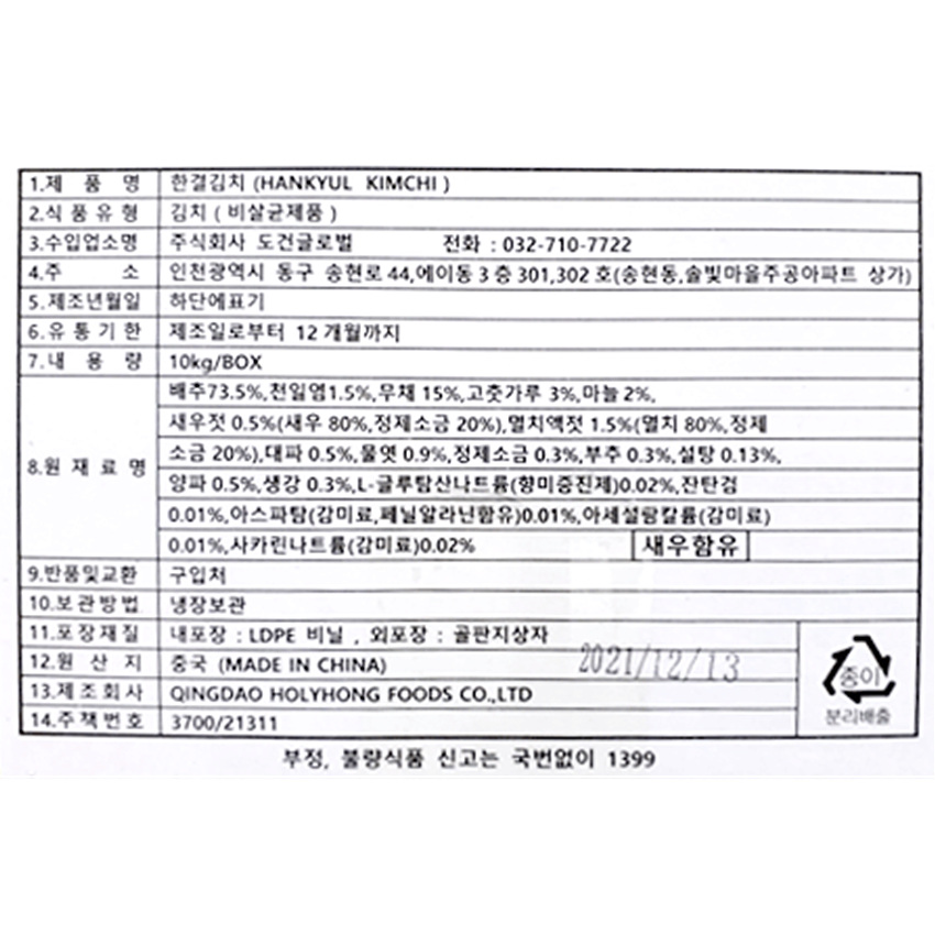 한결 포기김치(10Kg/BOX) 업소용 반찬