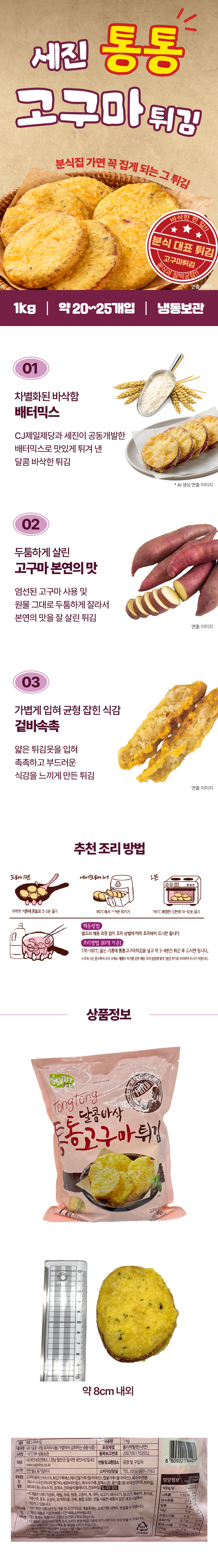 ♥튀김특가♥ 세진 통통 고구마튀김(48±2g*20±5개입 1Kg/EA)