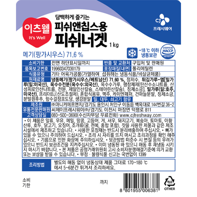 이츠웰 피쉬너겟(피쉬앤칩용 1Kg/EA)