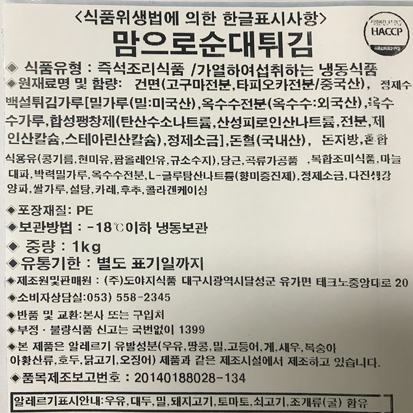 ♥튀김특가♥ 도야지식품 맘으로순대튀김(1Kg/EA)