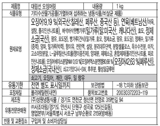 사조대림 오징어링(NEW_20g*50입 1Kg/EA)