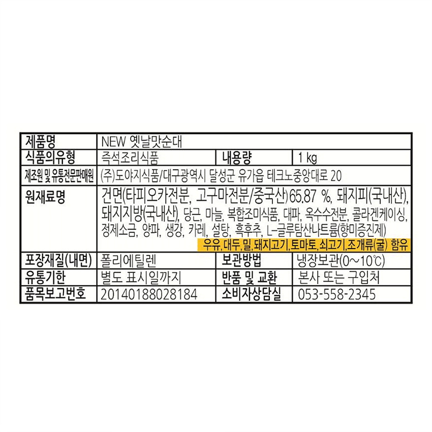 도야지식품 순대(new옛날맛_슬라이스_60±5개입 1Kg/EA)
