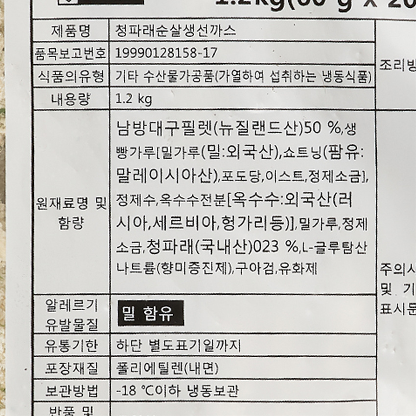 참손 청파래생선까스(60g*20입 1.2Kg/EA)