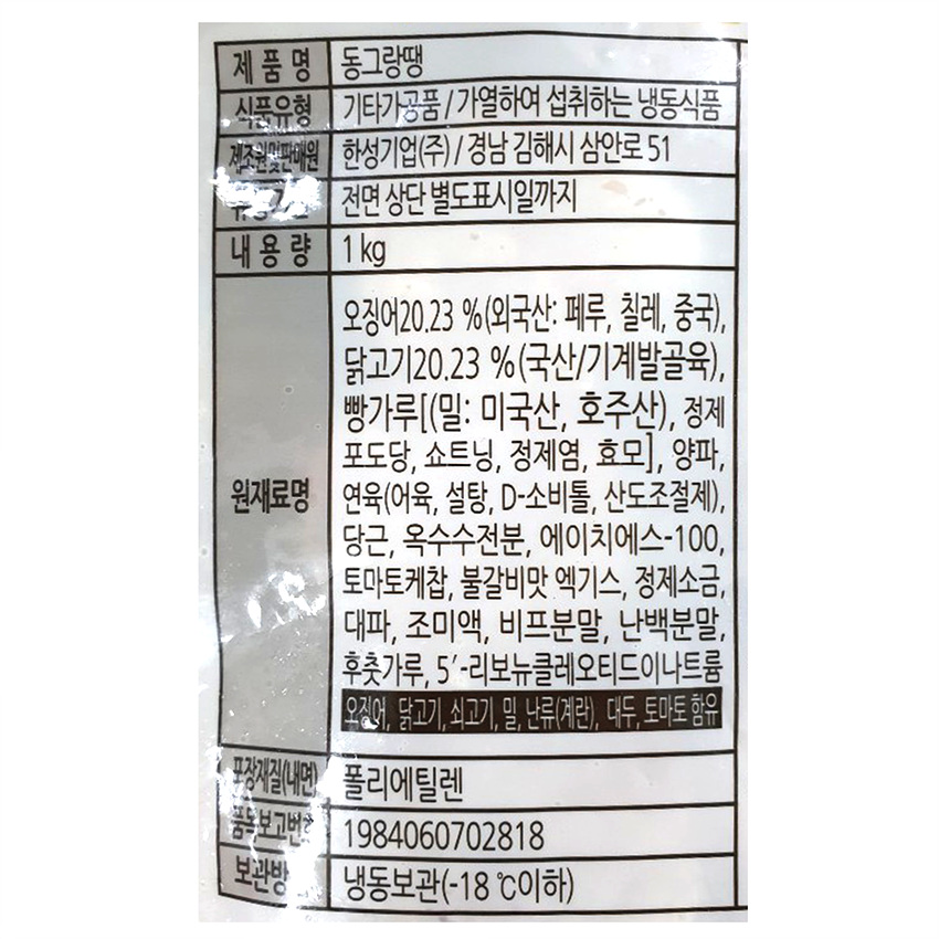 한성 해물동그랑땡(16.5g*61±3개입 1Kg/EA)
