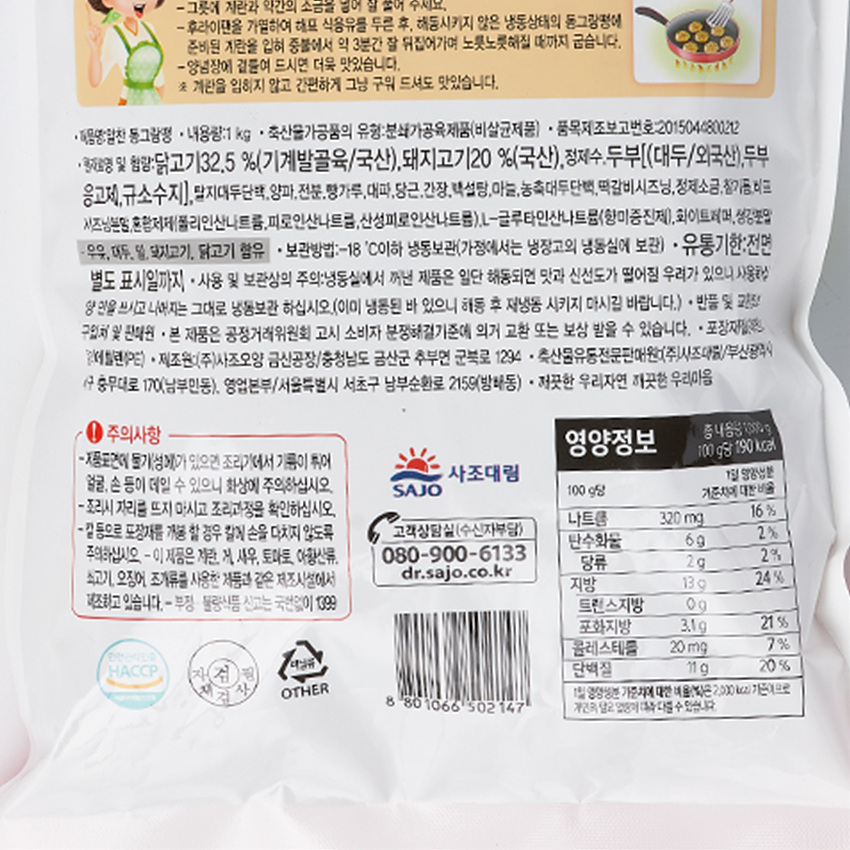 사조대림 알찬동그랑땡(NEW 1Kg/EA)