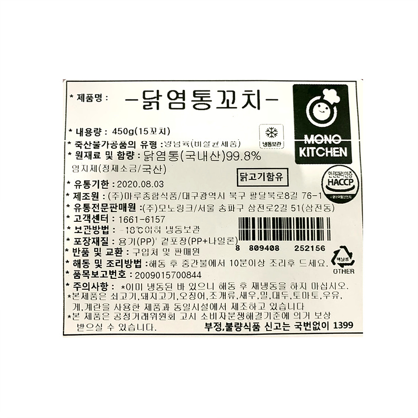 모노링크 닭염통꼬치(15개입 450g/EA)