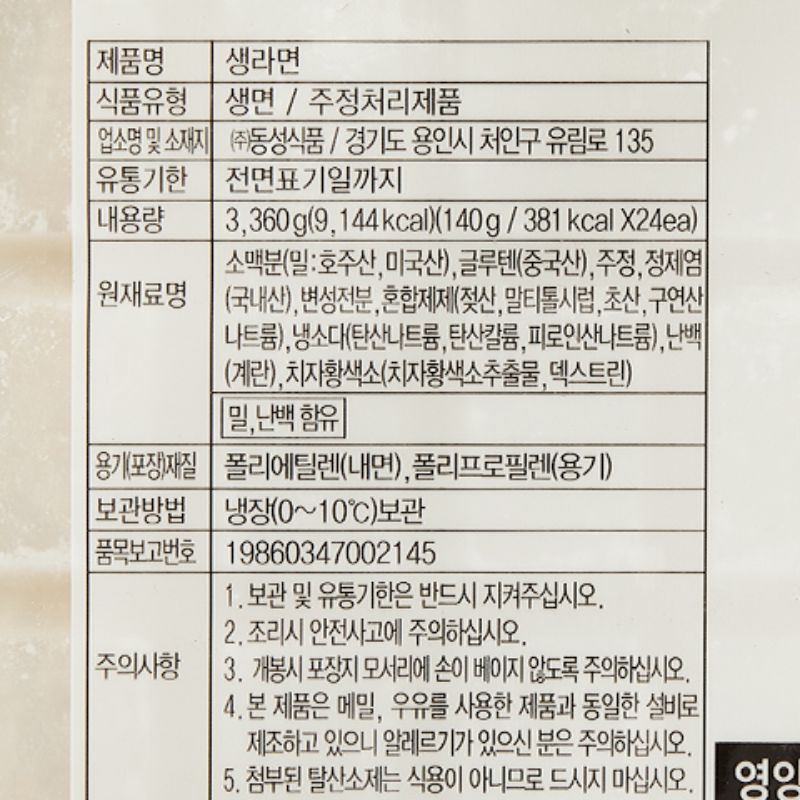 동성식품 생라면(140g*24개입 3.36Kg/EA)x2 라면
