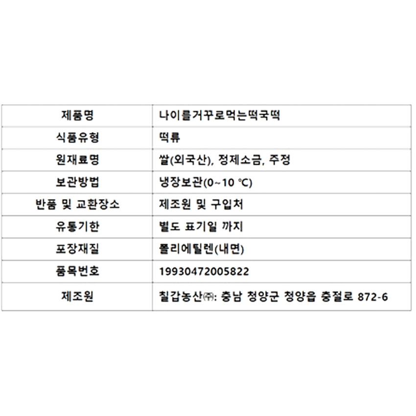 칠갑농산 쌀떡국떡(나이를거꾸로먹는 1Kg/EA) 이미지