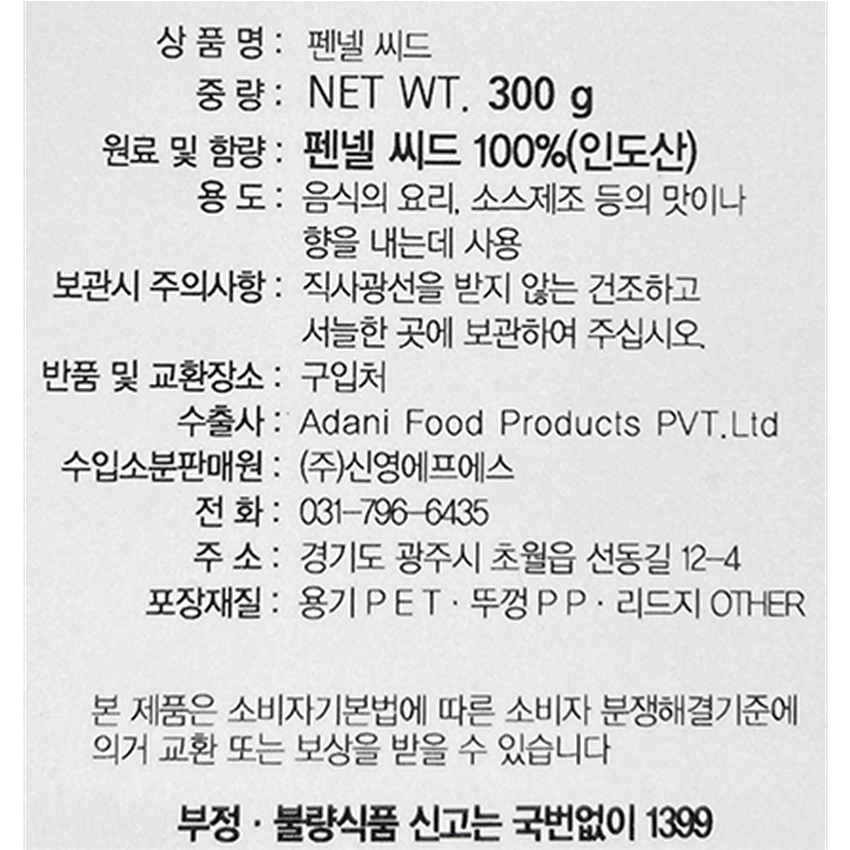 신영에프에스 펜넬씨드(300g/EA)