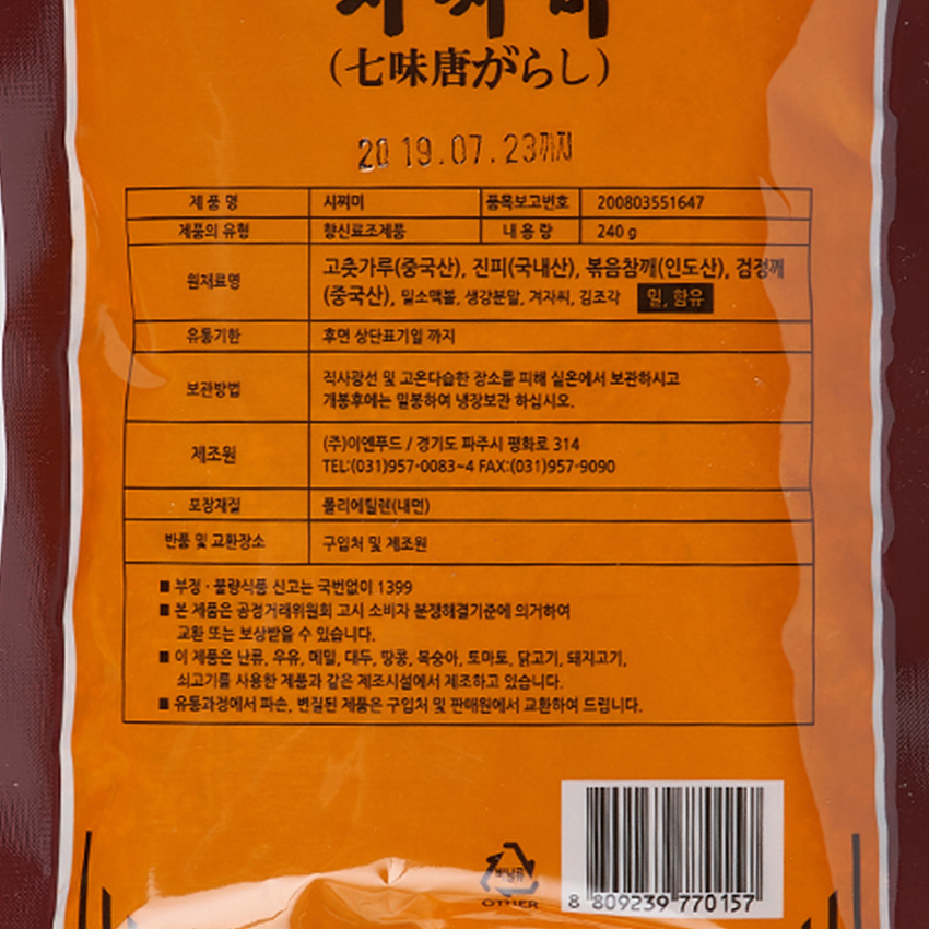 본 제품은 제품입고일별 유통기한 또는 품질유지기한이 상이하므로, 필요시 고객센터로 문의하여 주십시오. 제조일로부터 360일 까지