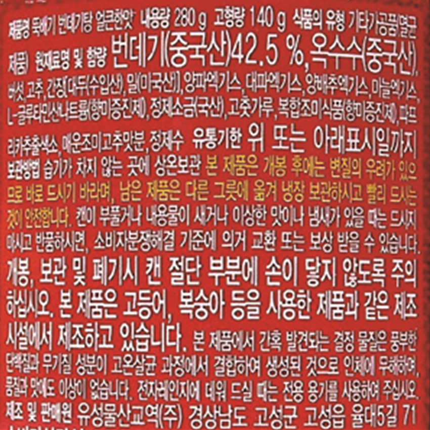 유동 얼큰한번데기탕(뚝배기 280g/EA)