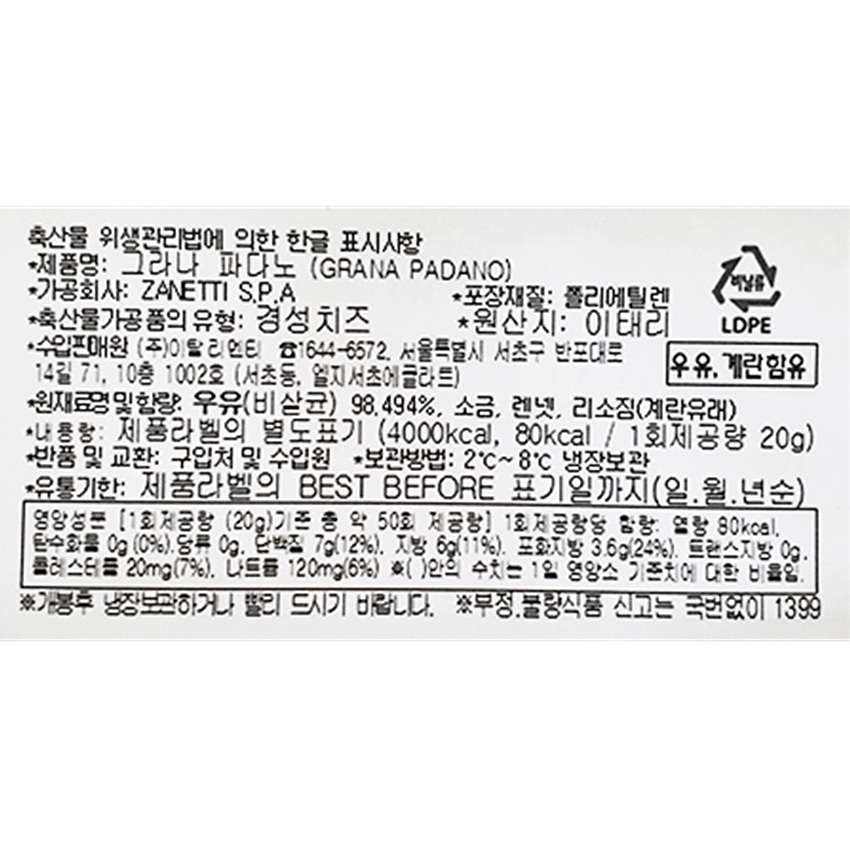 ZANETTI 그라나파다노치즈(블럭 1Kg/EA)