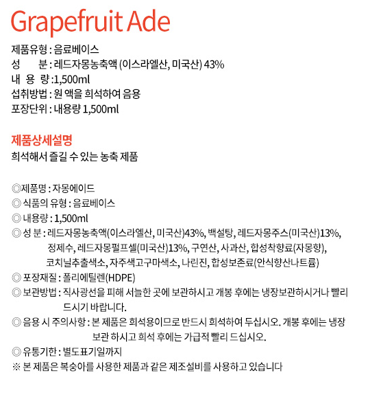 런던브릭스 자몽에이드 농축액(1.5L 1.5Kg/EA)