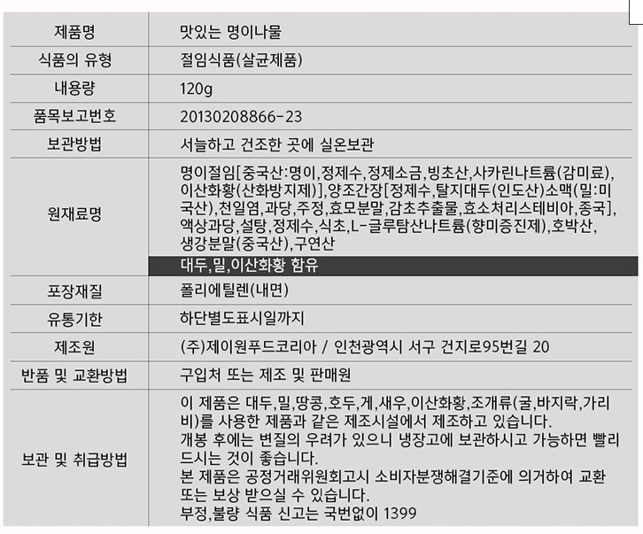 반찬단지 명이나물(120g/EA)  업소용 반찬 이미지