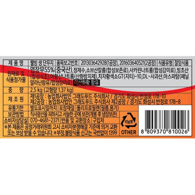 웰빙랜드 단무지(얇은반달 2.5Kg/EA)  업소용 반찬 이미지