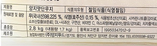 양지푸드 단무지(반달 2.8Kg/EA) 업소용 반찬