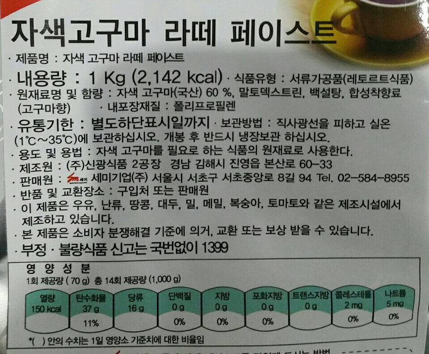 세미기업 자색고구마라떼페이스트(1Kg/EA)