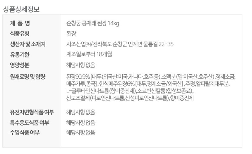 순창궁 콩재래 된장(지함 14Kg/EA)