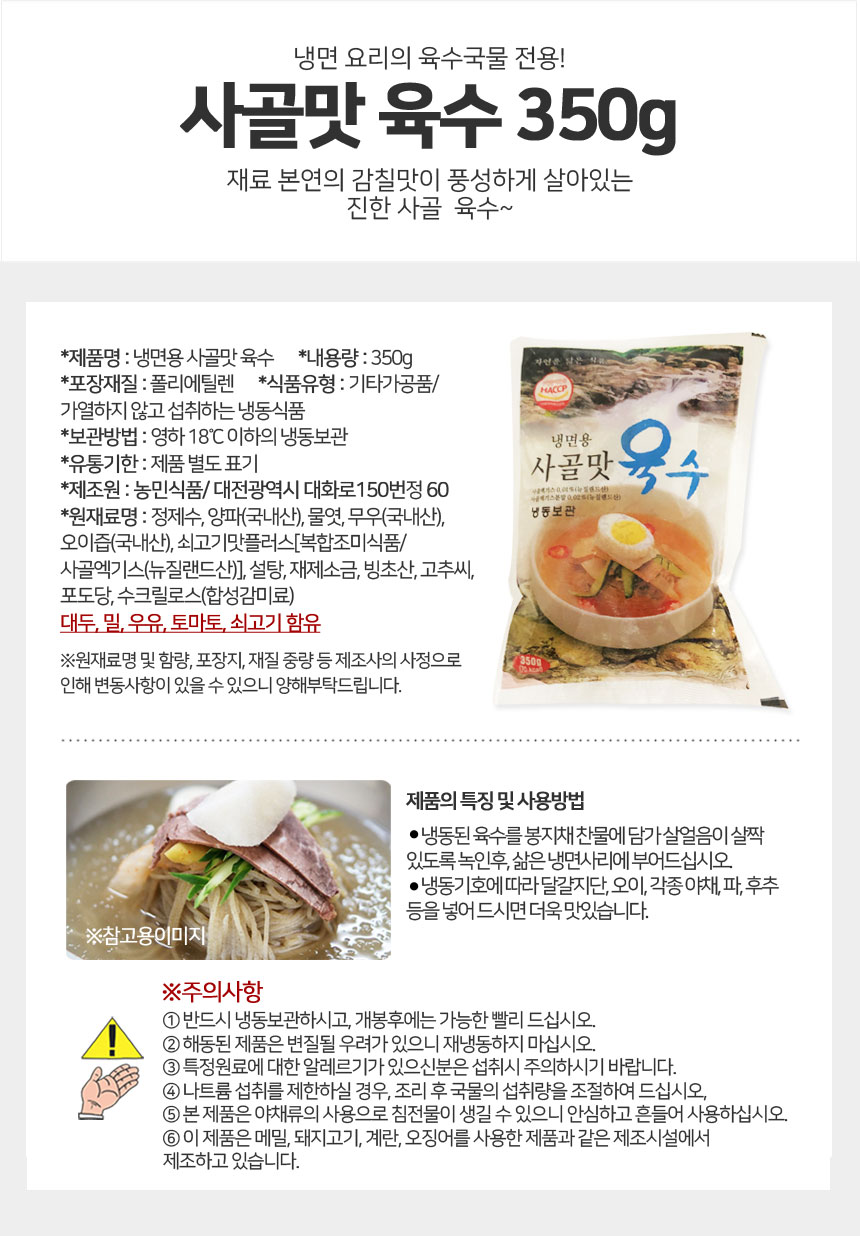 농민식품 냉면육수(사골 350g/EA) 이미지