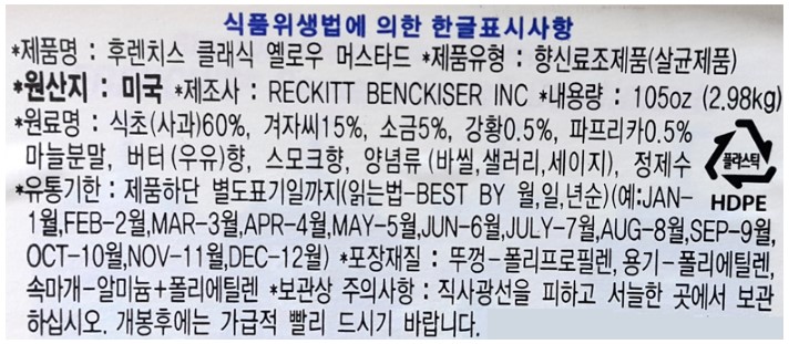 후렌치스 옐로우머스타드(2.98Kg/EA)