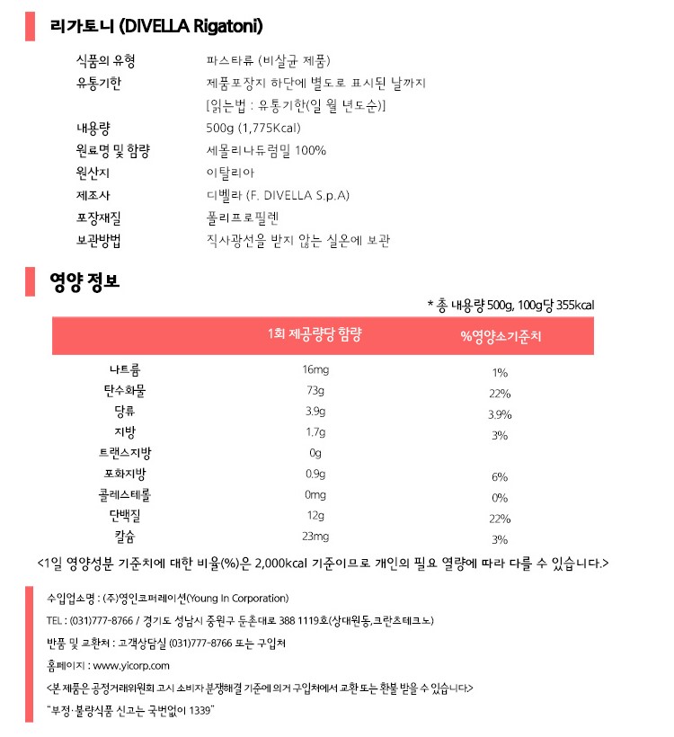 디벨라 리가토니(500g/EA)