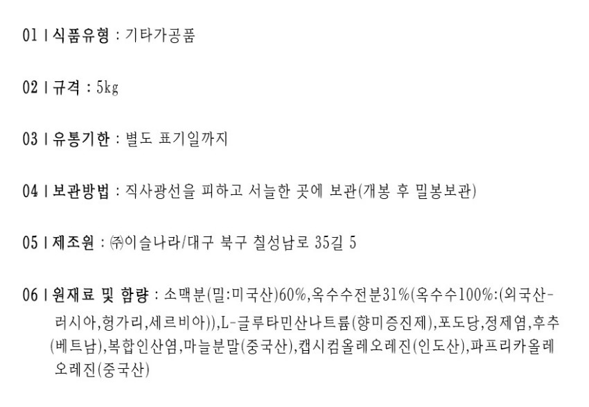 이슬나라 치킨파우더(5Kg/EA) 이미지