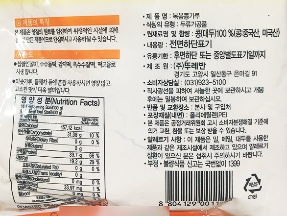 뚜레반 콩가루(볶은것 400g/EA) 이미지