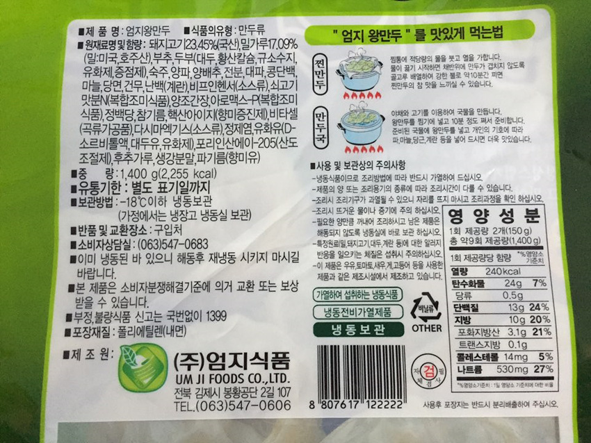 엄지식품 고기 왕만두(70g*20입 1.4Kg/EA) 고기만두