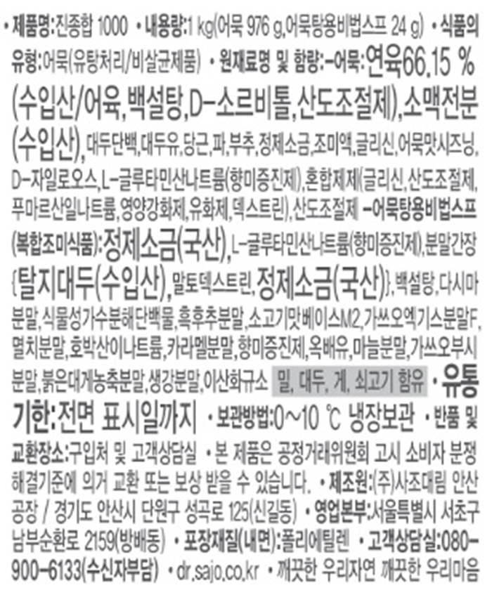 사조대림 종합어묵(진 1Kg/EA) 어묵 오뎅