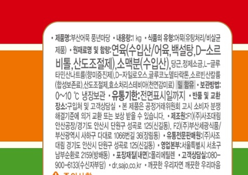 사조대림 사각어묵(풍년마당_부산_72g*13±1개입 1Kg/EA) 어묵 오뎅 이미지