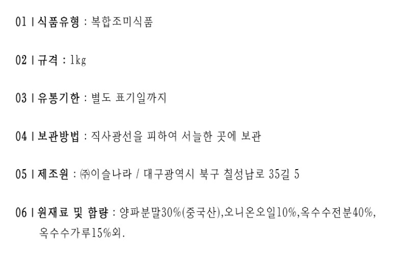 원재료명 및 함량
